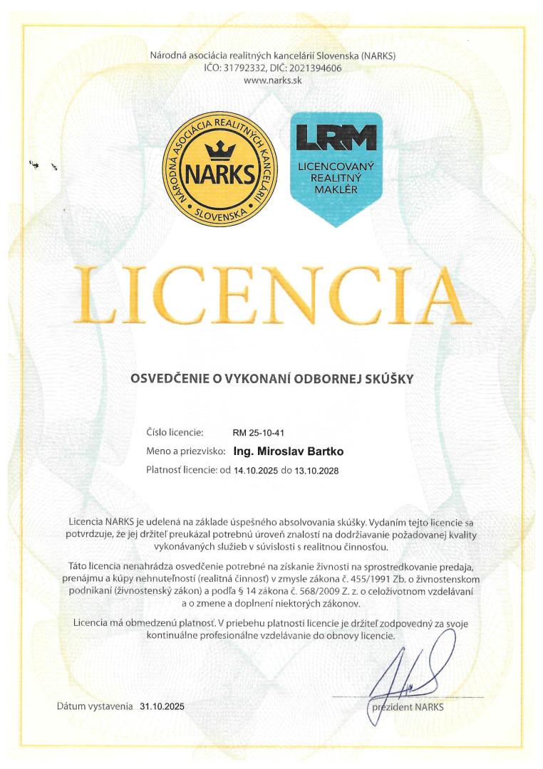 Certifikáty rodinného realitného poradcu - Ing. Miroslav Bartko